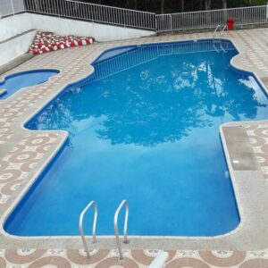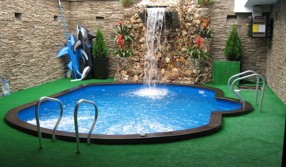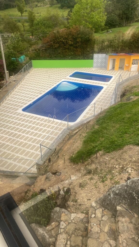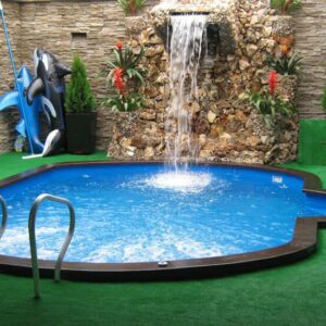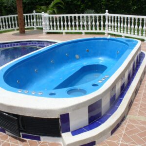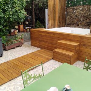Para este diseño realizamos la tina en fibra de vidrio, la base y el camino en madera teca